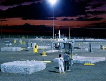 Fotografija iz otvorenih izvora Slika sibirske hemikalije postrojenje na mapi 4. Odlagalište, Kazahstan Ovaj Kazahstan postrojenje je prethodno bilo mjesto za testiranje sovjetske nuklearne energije oružje. Nuklearne bombe testirane su na Terentskom terenu, navodeći činjenicu da teritorij ovdje je potpuno pust, mada na ovom području U to vrijeme je živjelo oko 700.000 ljudi. 40 godina (od 1949 do 1989.) SSSR je organizovao 456 nuklearnih probnih eksplozija, što nije nisu mogle utjecati na stanje lokalne prirode čak ni za stotine kilometara od deponije, jer efekt pustinje ne viri otkazano. Godišnje održane vježbe postale su javne samo s raspadom SSSR-a. Prema preliminarnim procjenama, 200 hiljada ljudi bi mogli direktno patiti od skoro direktnih utjecaj „obučavajućeg“ zračenja na njih, te je u budućnosti potkopavan ispostavilo se da nijedna generacija susjeda na Poligonu nije imala zdravlje.