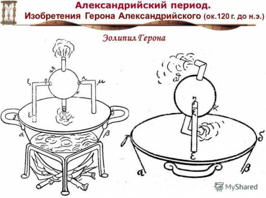Eolipilus (u prevodu s grčkog – „kugla boga vetrova Aeolusa“), kreiran od strane grčkog naučnika Irona iz 1. veka Aleksandrija, bila je prototip moderne parne turbine.