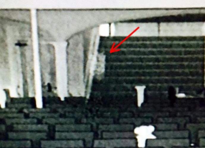 Misteriozni stručnjaci za fotografije na polju natprirodnog napravljen 19. decembra u drevnom teatru Biddeford (Maine). Prema riječima stručnjaka, u ovoj slici duh nekada slavnih Operna diva Eva Grey penje se stepenicama.