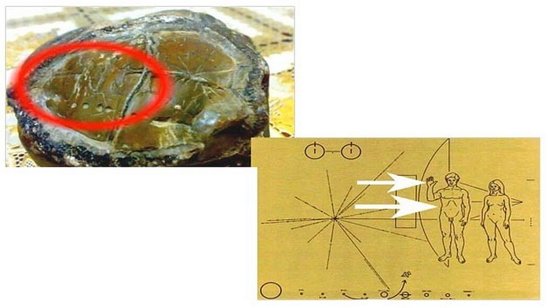 Graviranje prikazuje solarni sistem sa svojim planetama, čovjekom s uzdignutom rukom i pored njega žena. To čak ni ne čudi crtanje kamena u mnogočemu odgovara crtežu, prenio sa sovjetskog satelita, ovaj artefakt, kako je određeno naučnici stari stotine hiljada godina. Gde su u ta daleka vremena mogli ljudi znaju sve ove informacije i, što je najvažnije, zašto su im potrebne?