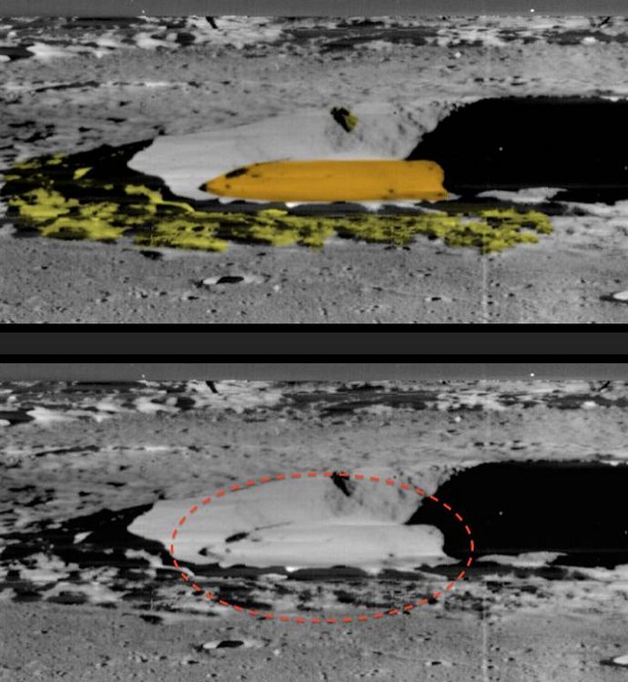 Tako kažu američki ufolozi, na primjer, Secure Team 10. Koristeći karte Google Earth, tvrde, danas na Mjesecu lako uočiti fantastične zgrade, očigledno nezemeljske porekla, koje potom nestaju sa predstavljenih slika NASA Fotografija ispod, snimljena 2009. godine, jasno je vidljiva slični „kompromitirajući dokazi“ koji su imali jedan od Amerikanaca Svemirska agencija Anthony Colaprete. Onda ovaj “kompromitirajući dokaz” upravo je nestao sa slike …