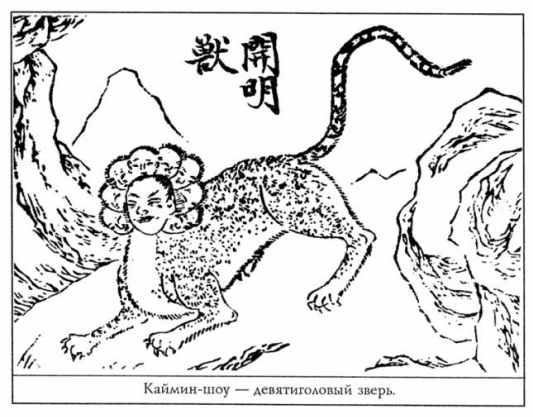 Na ovoj planini živi izvjesna životinja Caiming – “Emitira svjetlo “, koji čuva devet bunara, ograđenih žadom, i devet kapija. Izgleda poput ogromnog tigra sa devet glava i ljudska lica. Caiming stoji na vrhu Kunluna, okreće se na istok. Uz put ćemo spomenuti da je i na teritoriji Shambhale legende kažu da je do centra bilo devet najdubljih bunara zemlju i čuvao ih je njihov sjajan budistički duh sa gomilom munje (vajre) u ruci.