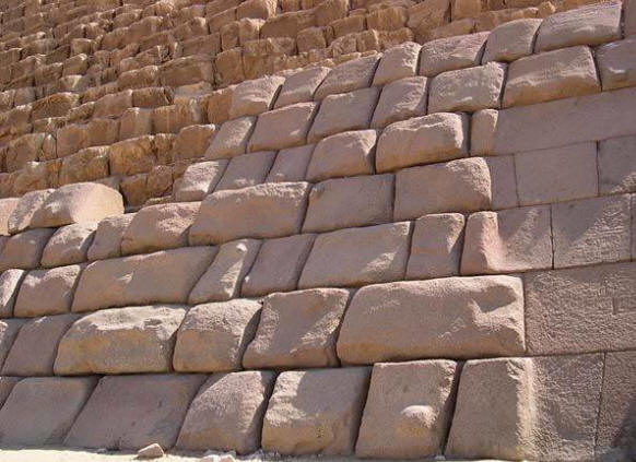 Ali faraonski konkretni radnici nisu mnogo brinuli o hrapavosti blokova: ili će sljedeći blok ili obloga ležati na vrhu! Prilikom sipanja na vrhu ležećeg bloka, otopina se prirodno potpuno reproducirala oblik donje površine bez ostavljanja jednog klika. Danas istoričari s poštovanjem osjećaju zglobove: mislite šta zadivljujuća preciznost fit