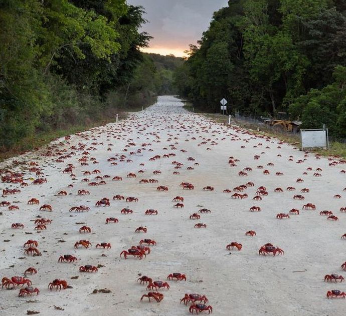 Crvene rakove prelaze iz šume u ocean samo sa svrhom – dati novo potomstvo, odnosno pružiti Božić novom životu. Ima ih toliko da blokiraju sve ceste i rute vlasti ostrva u ovom trenutku obustavljaju pokret vozila pored najtoplijih područja u kojima je to nemoguće da bismo to učinili, ovdje su odavno izgrađeni posebni mostovi, penje se i tunelima tako da kratkodlaki rakovi mogu migrirati na njih voda zaobilazeći opasne ceste autoputa.