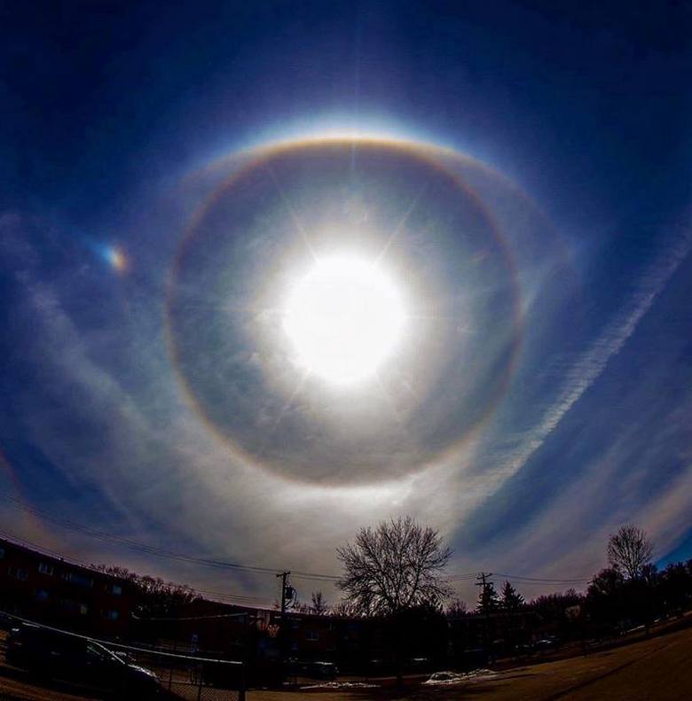 Prije nekoliko dana primijećen je neobičan solarni halo kanadskoj provinciji Manitoba. Optički fenomen u obliku blistav prsten oko sunca iznenadio je očevide izgleda kao ogromno oko koje gleda s neba.