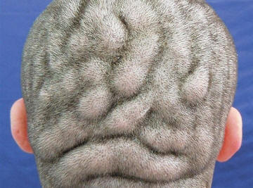 Sada je koža njegove glave poprimila oblik mozga: u parietalnoj i grubi bolni nabori kože formirani u okcipitalnoj regiji, podseća na moždani gyrus. Međutim, mladić nije zabrinut za svoju manu, ne krije glavu pod šeširom. On je čak ponosan na svoju neobičnu lobanju. Najčešće, pahidemija savijena se javlja kod muškaraca i obično se razvija ubrzo nakon toga pubertet. Uzroci bolesti su još uvijek nepoznato. Da biste poboljšali izgled glave, možete napraviti seriju kozmetičke operacije. Međutim, prilično je skupo. postupak.