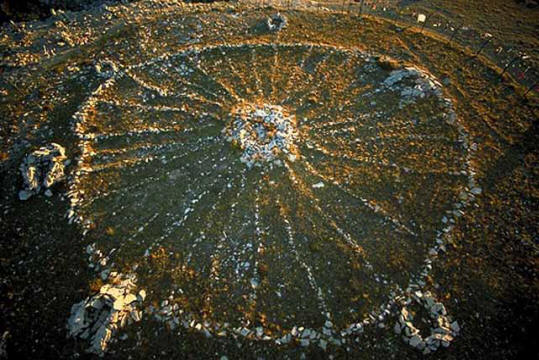 O megalitskim dokazima prošlosti, poput Britanski Stonehenge, libanonski Baalbek, uskrsni idoli, a da ne spominjemo egipatske piramide, pisali i pisali razne Mediji. Štoviše, porijeklo i svrha ovih spomenika kontroverza antike traje i danas. Ipak na našoj planeti ima i puno drugih, puno manje poznatih, ali ne manje drevne i misteriozne građevine. Volan Indijanaca Crow In Wyoming (SAD), u podnožju planina Big Horn, na travnata visoravan leži ogromni „upravljač – promjera oko 25 metara. Položen je od velikih gromada i kamenja dimenzija manja, u sredini je “čvorište” u obliku brda promjera 3,5 metar, od kojeg se 28 žbica razilazi do oboda, i van krugovi su visoki šest malih zaobljenih tuberkula oko 70 centimetara. Indijci ovu zgradu nazivaju “magijom” колесом”, а также “исцеляющим” и “сохраняющим жизнь”.