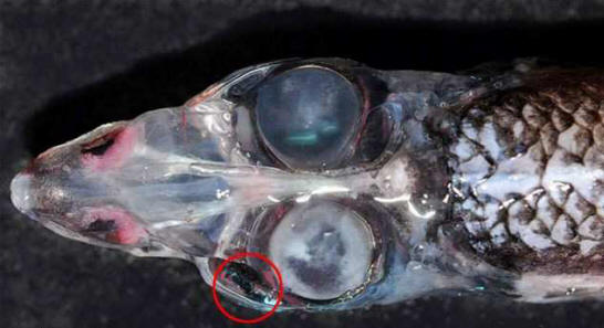 Naučnik koji je napravio otkriće smatra da je to dodatno formira se par očiju, tako da riba može otkriti plijen, grabežljivci i potencijalni partneri. Nalazi u ovom neobičnom stvorenje na dubini između 800 i 1000 metara.