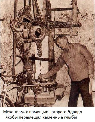 I dalje ostaje misterija kako je Edward izdržao blokove od mjesta vađenja na obali do vašeg mjesta i smjestili ih tamo, dok je podizao skulpture od 5 tona na visinu od 10 m. Nikada Nisam unajmio opremu za to i nikada nisam angažirao ljude da pomognu. Tanak, slabašni Edward, čija je težina jedva prelazila 47 kg, uvijek sam se savladao.
