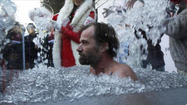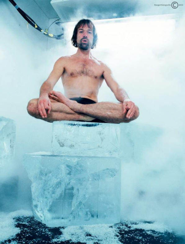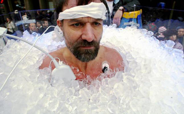 Wim Hof popeo se na Mount Everest, odjeven u šorc. Temperatura na vrhu Everest-a kreće se od -19 ° do -36 °. Naučnici pregledao njegovo tijelo i potvrdio da to nije imalo uticaja na njega niske temperature koje bi mogle ubiti srednju osobu sposobnosti.