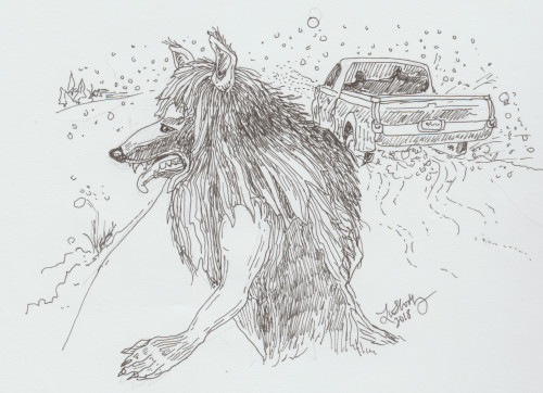 Laura je to očigledno bila čudovište, kao što je imao izgled psa s izduženim licem (poput škotskog ovčara collie) i lavova griva, međutim, bilo je upadljivo da je stvorenje stajalo zadnje noge (očito pas ili vuk), a potom se trčao na dvije udove. I tako oštro da je već sljedećeg trenutka sakrio se u guštu grmlja koje je obilno raslo pored puta. Mi smo dovezao se do mjesta sudara kamiona i to misteriozno pasa, ali nisu pronađeni tragovi krvi. Je toliko nas šokiralo da smo sve do moje kuće s kojom smo išli djevojka tiho. A samo u mojoj kuhinji preko šoljice jakog čaja razgovarali, počeli raspravljati o onome što se dogodilo: naizgled, šok za to vrijeme je tek prošlo pored nje i moga.