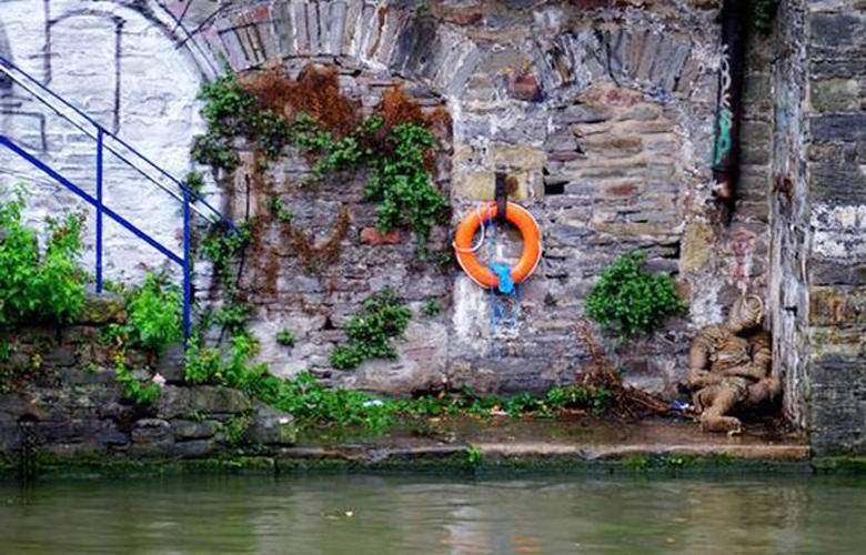 Na obali rijeke Avon u engleskom gradu Bristolu bio je zlokobna lutka u ljudskoj visini, slična zavoju mama.