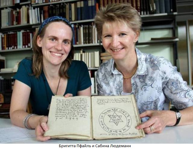Brigitte Pfail (zamjenica voditelja odjela za rukopise biblioteke) i Sabina Ludemann (voditeljica odjela za knjige o hezijama) sastanci) pretpostavili su da su šifrirani „tableti“ napisana na njemačkom i arapskom pismu – ništa više pokušaj drevnog autora da obmanji neupućene u tajne Alhemičari i mađioničari.