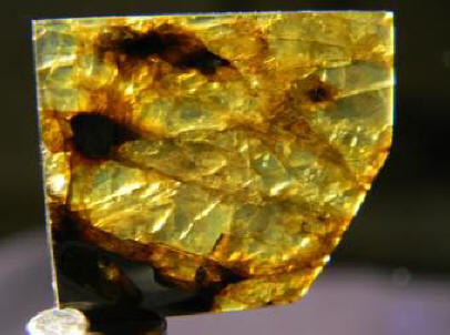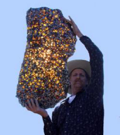 Fotografije iz otvorenih izvora Najpoznatija partija, početna cijena koji je najavljen na dva miliona dolara, objavljeno je u Aukcija u New Yorku 2008. godine – bila je težina bloka meteorita 420 kg. Ali tada kupci nisu cijenili takvu neobičnost dragulj, pa lot nikada nije prodat. Vremenom ovo ogromni prasak bio je podijeljen na manje komade koji su bili podložno rezanju. Jedan dio meteorita težak 31 kg danas čuva se u Američkom muzeju prirodne istorije.