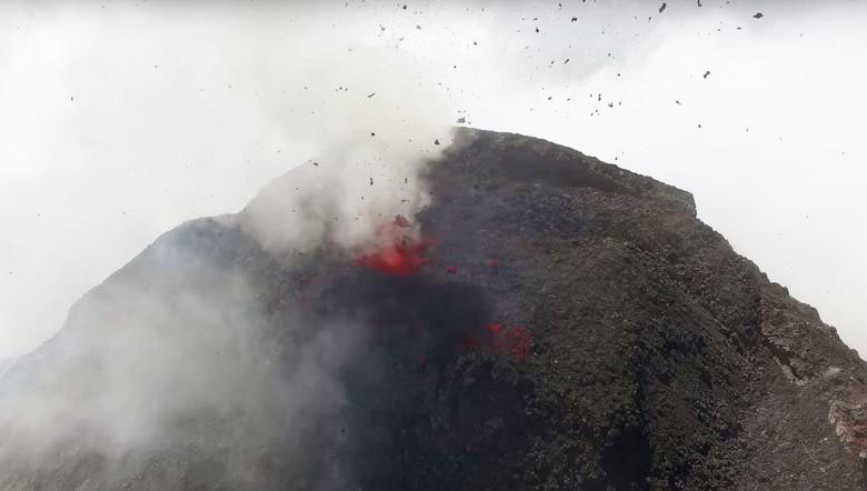 Obratite pažnju (pogledajte video) koliko su blizu kamere, gađajući vulkan, lava struji, doslovno prskajući svoje otvore vulkan, kako istovremeno upečatljivo, zastrašujuće i iznenađujuće. Bravo momci!