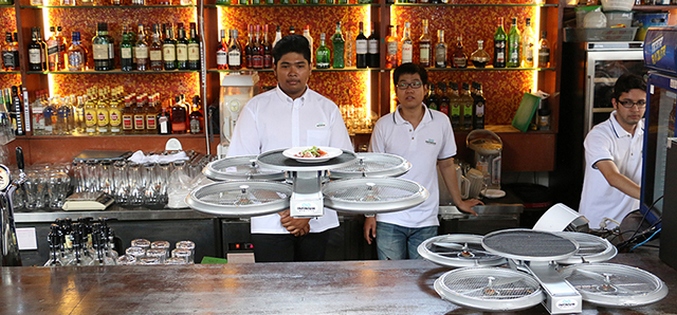 Singapur Timbre @ Substation Restaurant, koji već dronovi se koriste na sistemu Infinium Robotics, na ovaj način zasad želi samo da privuče pažnju. Činjenica je da su roboti ovdje se koriste samo u pomoćnim djelima: dostava hrane i pića iz kuhinje do predjela za konobare. Međutim, u skoroj budućnosti uprava restorana planira da iskoristi vrijeme dronovi-konobari
