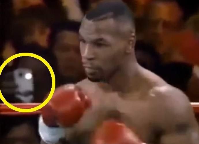 Za vrijeme zagrijavanja boksera, snimatelj je kameru usmjerio prema Mikeu. Tyson, a u pozadini muškarac s velikom pametnog telefona. Istovremeno, zagonetni gledalac zadržao se naprava kao da snima svoj video iz svog ugla.