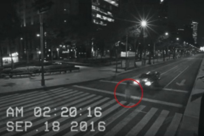 CCTV kamera instalirana na jednom gradu Raskrsnice Mexico City-a, snimljene kao nogostup sablasna djevojka kreće. Možete je lako vidjeti mračnu kosu i dugu svijetlu haljinu, nešto poput noći majica.