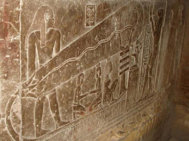 Postoje kritični razlozi jer se slika prati samo hijeroglifi neke religiozne himne posvećene bogu suncu – Ra. To je omogućilo egiptolozima da odbace sve neformalne hipoteze i samouvjereno objašnjavaju piktograme koji prikazuju hramski misterij sa nebeski brod boga sunca Ra. Prema vjerovanjima Egipćana, sunce svaki dan umire uvečer, a ustaje u zoru. Evo ga simbolizira zmiju koja, kao što se vjerovalo u zemlji faraona, preporodi se kad god ispuši kožu.