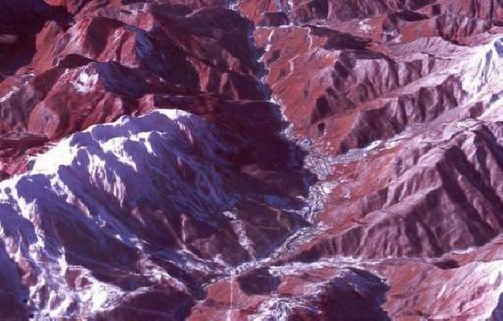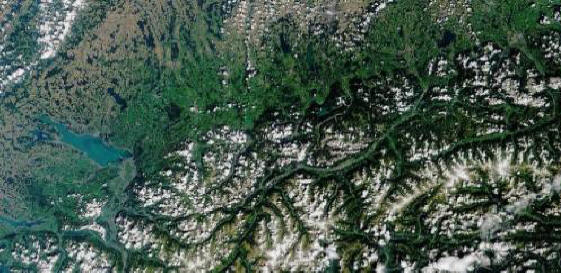 Fotografije iz otvorenih izvora. A ovo je austrijski grad Insbruck i njegov okruženje. Slika je snimljena sa satelita NASA 2001. godine. Grad bili domaćini Zimskih igara 1964. i 1976.