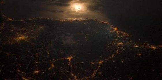 Fotografija iz otvorenih izvora Ova slika je uzeta sa ploče. Međunarodna svemirska stanica u ponoć. Prikazuje upaljeno svetlo čitavu francusko-italijansku granicu, uključujući grad Torino, gdje prošao Igre 2006.