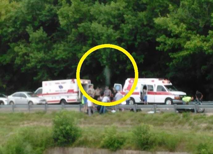 Kamiondžist Sol Vazquez fotografirao je ovu kameru kamion vozi susednim putem. Fotografija prikazuje automobile vozila hitne pomoći i policije, kao i zagušenja s drugih automobila koji nakupljen u blizini zbog nemogućnosti vožnje.