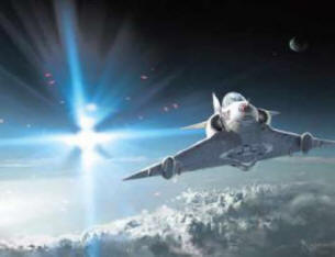 Svemirski brod je odstupio i stao ispod i pored Francuski avion, a Robert je mogao vidjeti pilota u svojoj kabini, koji je okrenuo glavu i pogledao prema brodu. Nadzvučni borac koji je dizajnirao Dassault Aviation u sredinom 1950-ih. Robert je također mogao vidjeti pilota i svoju nadzornu ploču ploču na ekranu i na reaktivu nanesite registarski broj motor: FB.