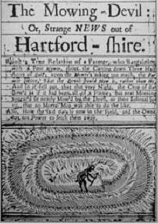 Graviranje od 22. avgusta 1678. ilustrira legendu. o vražjem žetelu. Prikazuje užareni objekt u pozadini noći nebo nad ovsenim poljima u engleskoj županiji Hertfordshire. Sljedećeg jutra neki su farmeri pronašli uredno pokošenu njivu. Zemljište nalik na usjeve.