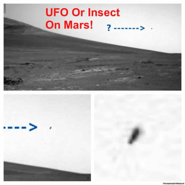 Još jedan dokaz da sa Marsom nije sve tako glatko. Istraživači su pronašli na jednoj fotografiji površine Marsa sa NASA-ino mjesto je taman objekt. NLO? Sorinka? Istraživač Scott Waring na njegovoj web stranici sugerira da se to maksimalno poveća objekt više liči na … letećeg insekta.