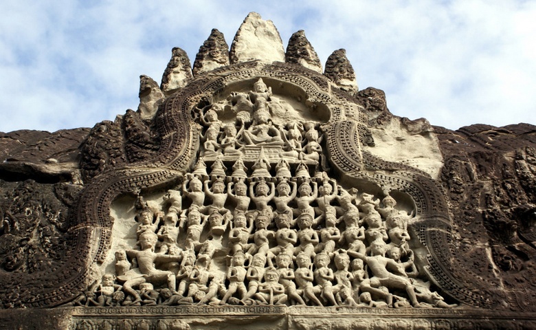 Štaviše, sve površine hramskog kompleksa (i ovo kvadratni kilometar) prekriveni su najfinijim rezbarijama reljefa, prikazujući sve vrste prizora. Štaviše, kako je utvrđeno, ona pojavile su se nakon izgradnje zidova, stubova, nadvratnika i tako dalje. Odnosno, kamenjari nisu imali pravo da pogreše, jer u protivnom rastavite, na primjer, pola zida. Niko se ne bi složio s tim sadašnji arhitekt! ..