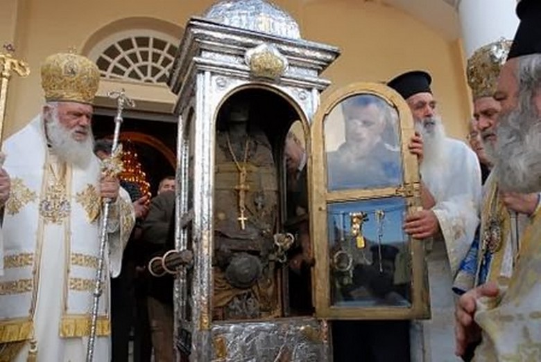 Uoči svakog praznika staklena rakovica u kojoj leži telo svetice, okomito postavljeno u glavnom manastiru crkvama. Ljudi prolaze pored nje cijelu noć, ljubeći čašu u nivou ruku Sveti Gerasimus. Sledećeg dana, odvija se povorka tokom koji rak sa relikvijama nose pacijenti koji leže na zemlji. Je Pomaže u otjeranju demona od nesretnih i vraćanju njihovog uma. Neki opsjednuti ponašaju se vrlo nasilno, psuju crkvu i jure svećenstvu. Oni moraju biti povezani. Međutim to onog trenutka kada je rak pored luđaka, on se smrzava i kako kao da se smiruje. Čim povorka prođe – i ludnica opet počne trčati amok.