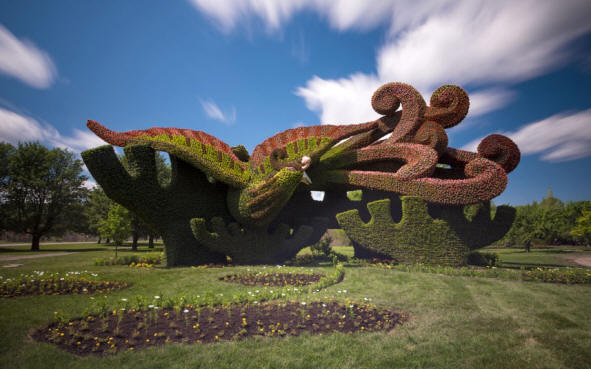 Hortikulturno nadmetanje Mosaicultures Internationales de Montreal vam nudi više od 40 trodimenzionalnih skulptura. Stvorilo ih je dvjesto vrtlara iz Europe, Azije, Severne i Južne Amerike, Bliskog Istoka i Afrike. Skulpture napravljene pažljivim postavljanjem više od tri milion cvijeća i biljaka.