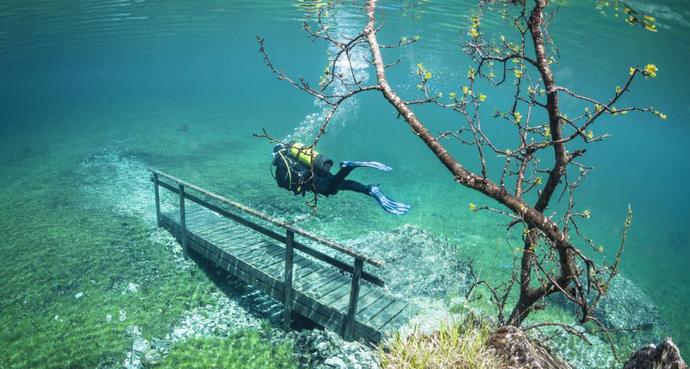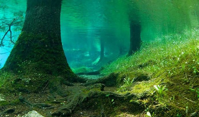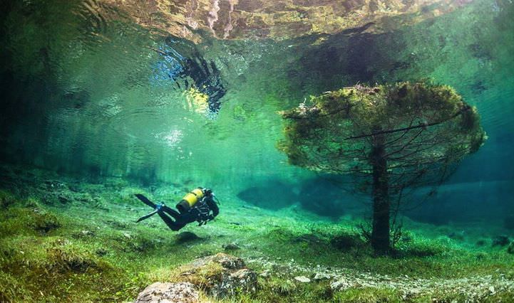Dno Zelenog jezera bilo je posebno opremljeno klupama, mostove, staze i posađene drveće tako da turisti šest mjeseci mogli uživati u malom čudu u obliku podvodnog parka.