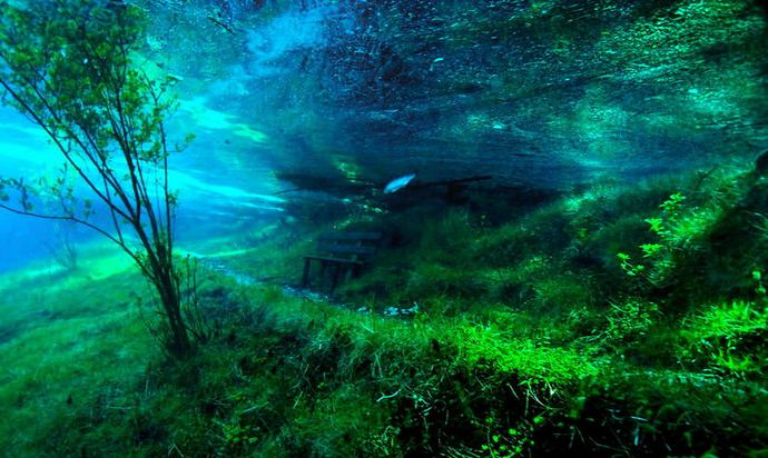 Zimi i jesen je najobičnija, nezapamćena alpski park. Ali kad dođe proljeće i počne snijeg na planinama da bi se istopili, park se uranja pod vodu, pretvarajući se u jedinstven njegovo mjesto ljepote – komad zelene zemlje na dnu rezervoara.