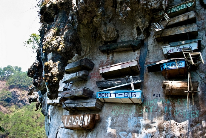 Jedinstveno groblje pod nazivom “Sagadini viseći lijesovi” Ima istoriju od dve hiljade godina. Ovde su od davnina lijesovi obješen od vapnenačkih litica na konopcima, a vjeruje se što je viši pokojnik suspendiran, to bolje, jer prema narodnom verovanju Filipinci su u ovom slučaju duša pokojnika bliža Bogu, a samim tim i njoj lakše letjeti u nebo.