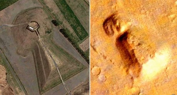 Ufolozi su odmah izneli pretpostavku da je ta činjenica opet dokazuje teoriju da su Marsovci jednom kolonizirali Zemlju. Otuda i neka sličnost mnogih elemenata krajolika u Crvenoj boji planete sa najstarijim zgradama na Zemlji.