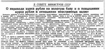 Fotografija iz otvorenih izvora Prema saopćenju komesara za finansije SSSR-a �Arsenia Zvereva (prvi put je upravljala finansijama SSSR-a od 1938.) Staljin je pitao o mogućnosti monetarne reforme na kraju Decembra 1942. i zahtijevao da prvo račune dostave na početku 1943 godine. U početku je bilo planirano da provede monetarnu reformu 1946. godine godine. Međutim, zbog gladi koja je bila uzrokovana sušom i neuspjehom usjeva u U brojnim sovjetskim regijama početak reformi morao se odgoditi. Tek 3. decembra 1947. odlučilo je Politbiro Centralnog komiteta CPSU (B.) ukidanje kartičnog sistema i početak monetarne reforme. Uslovi monetarne reforme definirane su dekretom Vijeća ministara SSSR-a i Centralnog komiteta VKP (b) od 14. decembra 1947. godine. Razmjena novca obavljala se u cijeloj teritoriju Sovjetskog Saveza od 16. do 22. decembra 1947. i u Udaljeni krajevi završili su 29. decembra. Pri preračunavanju novac za plaće razmjenjivan je tako da je plaća ostala nema promene. Novac za promjenu nije bio podložan razmjeni i ostao je u tiraž po nominalnoj vrijednosti. Za gotovinske depozite u Sberbanci iznosi i do 3 hiljade rubalja su takođe podložne razmjeni jedan na jedan; na depozite od 3 do 10 hiljada rubalja, ušteda se smanjila za jednu trećinu Iznosi na depozite veće od 10 hiljada rubalja dvije trećine su podlijegale povlačenju iznos. Oni građani koji su kod kuće držali velike količine novca mogli su razmjena po kursu od 1 nove rublje do 10 starih. Relativno preferencijalno za vlasnike su uspostavljeni uvjeti razmjene gotovine obveznice države: 1947 kreditne obveznice ne podliježe revalorizaciji; zamenjene su masovne kreditne obveznice obveznice novog zajma u omjeru 3: 1, obveznice slobodno realizirani zajam iz 1938. godine razmijenjen je u omjeru 5: 1. Gotovina sredstva koja se drže u namirnicama i tekućim računima zadružne organizacije i kolektivna poljoprivredna gazdinstva preispitana su iz izračuna 5 stare rublje za 4 nove. Vlada je istovremeno otkazala sistem kartica (ranije od ostalih država pobjednica), visok cijene u komercijalnoj trgovini i uvedene pojedinačne snižene vladine maloprodajne cijene hrane i industrijskih proizvoda roba. Dakle, za hljeb i brašno cijene su snižene u prosjeku 12% prema trenutnim cijenama obroka; za žitarice i tjestenine – za 10% i itd. Dakle, u SSSR-u negativno posljedice rata na polju monetarnog sistema. To je dozvolilo trgovati ujednačenim cijenama i smanjiti ponudu novca za tri sekunde još jednom (od 43,6 do 14 milijardi rubalja). Generalno, reforma je bila uspešan. Pored toga, reforma je imala socijalni aspekt. Špekulante pritisnuta. Ovo je obnovilo socijalno gazde tokom ratnih godina. pravda. Na prvi pogled činilo se da su svi povrijeđeni, jer svi su 15. decembra imali nešto novca pri ruci. Ali obični radnik koji živi od plaće, čija nije ostalo puno novca samo sredinom meseca nominalno. Čak nije ostao bez novca, od 16. decembra počeo da daje plaće novim novcem za prvu polovinu meseca, što obično nije Plate se obično isplaćuju mjesečno nakon završetak mjeseca. Zahvaljujući ovom izručenju radnika i zaposlenih u rane reforme osigurale su novi novac. Razmjena od 3 hiljade rubalja Prilog 1: 1 zadovoljio je ogromnu većinu stanovništva, budući da su ljudi nisu imali značajna sredstva. Po odrasloj populaciji prosječan depozit na štednoj knjižici ne bi mogao biti veći od 200 rubalja. Jasno je da su “stahanovici” izgubili sa špekulantima, izumitelje i drugo malo populacije koje su imale super profit. Ali uzimajući u obzir opće smanjenje cijena, oni su, bez pobjede, sve ali nije mnogo pogođeno. Tačno, oni koji držao velike količine novca kod kuće. To se odnosilo na špekulativne grupe. stanovništva i dio stanovništva južnog Kavkaza i srednje Azije koji Nisu znali rat i zbog toga su imali priliku trgovati. Treba napomenuti jedinstvenost staljinističkog sistema, koji je uspio povući većinu novca iz opticaja novca i istovremeno većina običnih ljudi nije stradala. Štaviše, čitav svijet je bio zadivljena samo dvije godine nakon završetka rata i nakon neuspjeha usjeva iz 1946. godine, glavne cijene hrane bile su održavaju na nivou lemljenja ili čak umanjuju. Odnosno, skoro sve hrana je bila dostupna svima u SSSR-u. To je za zapadni svijet bilo je iznenađenje i uvredljivo iznenađenje. Kapitalistički sistem je bukvalno guran u prljavštinu do ušiju. Dakle, UK na čijoj teritoriji četiri godine nije bilo rata i koja je pretrpjela u ratu neizmjerno manje od SSSR-a, ranih 1950-ih mogao otkazati sistem kartice. U ovom trenutku u nekadašnjoj “radionici svijeta “desili su se štrajkovi rudara koji su tražili da ih osiguraju životnog standarda kao rudari SSSR-a. Kako je Staljin oslobodio rublje sovjetske rublje u dolaru od 1937. godine vezano za Američki dolar. Kurs rublja izračunat je u stranim valutama na osnovu američkog dolara. U februaru 1950. Centralni Zavod za statistiku SSSR-a o hitnom raspoređivanju I. Staljina preračunao je tečaj nove rublje. Sovjetski specijalci, fokusirajući se na kupovnu moć rublje i dolar (uporedili smo cijene robe) i izvukli cifru od 14 rubalja za 1 dolar. Ranije (do 1947.) po danu je dano 53 rubalja. Međutim, prema Šefovi ministarstva finansija Zverev i šef Državne komisije za planiranje Saburov, kao i prisustvovao ovom događaju, kineski premijer Zhou Enlai i albanski vođa Enver Khoja, Staljin je prešao 27. februara i napisao ovu cifru: “Najviše – 4 rubalja.” Uredba 28. februara 1950. Vijeće ministara SSSR-a prebacilo je rublje na trajna baza zlata, vezanje za dolar je otkazano. Sadržaj zlata rublje je postavljen na 0,222168 grama čistog zlata. Od 1. marta 1950. godine osnovana je Otkupna cijena Državne banke SSSR-a za zlato od 4 rubalja. 45 kopeka za 1 gram čisto zlato. Kao što je Staljin napomenuo, SSSR je tako bio zaštićen od dolara. SAD su nakon rata imale viškove dolara, koji su hteli da se spu