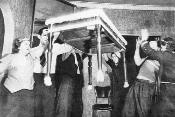 Održali su spiritualističku sjednicu, tokom koje su se isključili svjetlo i sjeo za okrugli stol na kojem su razne predmeti koji podsećaju na parapsihologe Filipa. I duh stvarno pojavili.