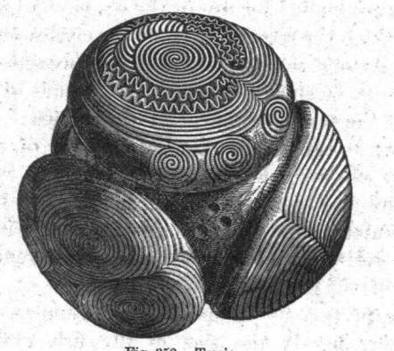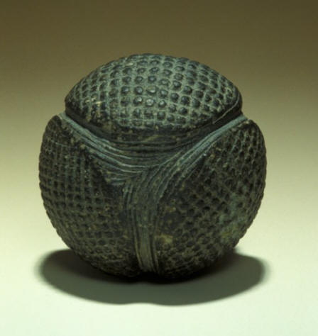 Fotografija iz otvorenih izvora Većina kamenja ima isti promjer – 70 milimetara, s izuzetkom nekoliko većih, čiji dimenzije dostižu 114 milimetara u promjeru. Količina izbočina na kamenju kreće se od 4 do 33 na površini neki imaju spiralne i diskoidne obrasce. Ni manje zanimljiv kamen pronađen je u Aberdeenshireu, njegov prečnik oko tri centimetra (oko osam centimetara). Na njemu tri su utisnute okrugle „kapice“ spiralni obrasci slični simbolima. Napravljeno je između 2500 i 1900 godina pre naše ere. Geometrija drevnih pet kamenje muzeja Ašmola prethodno je bilo u privatnoj kolekciji Britanski arheolog, pionir drevne minojske civilizacije Sir John Evans, koji je vjerovao da bi ih se moglo koristiti kao granate za staro bacanje oružja. Međutim jeste objašnjenje im se ne čini istinitim, jer na kamenjem nema kamenčića oštećenja, koja bi se nužno dogodila da su korišteni tokom vojnih sukoba. Da, i sam oblik kamenja, njihova složenost proizvodnja predlaže da se toliko potrudite, praveći školjke, besmisleno.
