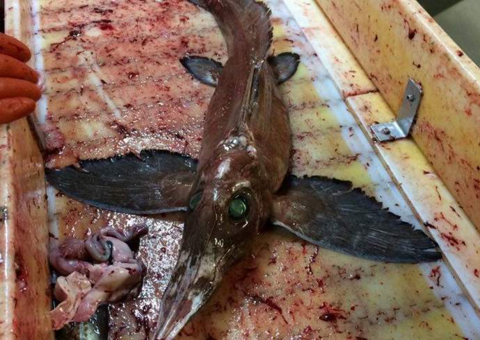 Tenner je ribu nabavio iz mreže i pokazao je kolegama. Stvorenje ima dugu sličnost kljuna, velike široke peraje i neobičan rep. Ali najviše je to ribe pogodilo oči ovoga bića koja su blistala svim nijansama zelene i izgledala, Izgledalo je tačno u duši ljudi. Kanađani su sugerisali da bi nauka mogla ne znaju za postojanje ove vrste, a za naučnike su učinili nekoliko fotografije mrtve morske životinje.