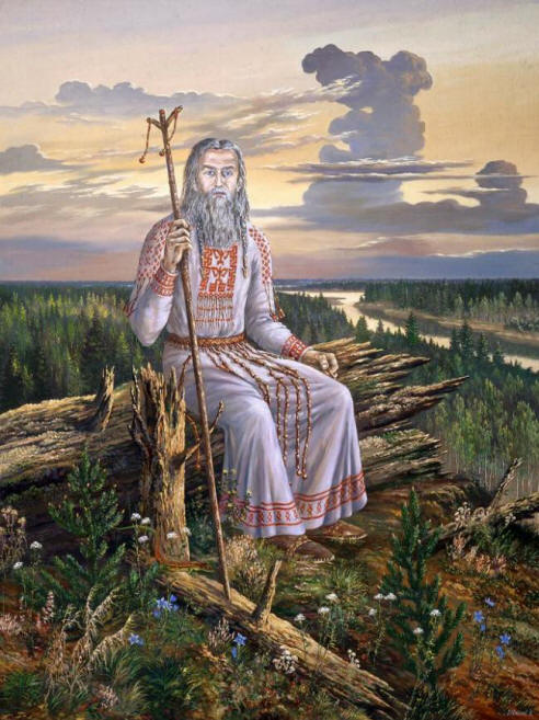… Svakog proljeća, čim se snijeg topi, nastupa Molfar drevni šamanistički obred „sticanja snage“. Ide u planine, nađe prema jednom od njegovih vođenih znakova, špilja je tamo zidana bez hrana i voda. Prekriven je travnjakom i mahovinom, natkriva ulaz kamenjem, tako da nijedna zraka svjetlosti, niti jedan zvuk izvana ne prodire u ovo sklonište. Tamo, uronjen u duboku meditaciju, Molfar živi dvanaest dana. Tako je on očišćen od svakog zla i prljavštine koje bi ga mogle mučiti godinu dana sesije lečenja. Tako dobiva novi naboj duhovne snage …