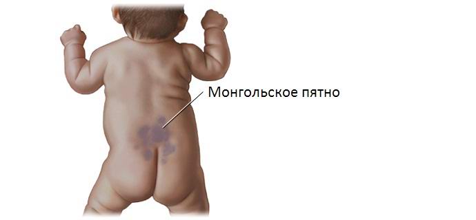 Plavkasto obojenje epiderme u stražnjici, križnici i bedrima novorođeni Azijci uzrokovani melaninom u sloj vezivnog tkiva kože. Međutim, medicina i dalje postoji nesposoban da objasni zašto se melanin nakuplja u takvom Količine i najvažnije – zašto se pojavljuje samo mongolski spot predstavnici ove rase. To se jasno vidi odmah nakon rođenje, međutim, nestaje nakon godinu ili dvije, vrlo rijetko ostaje u odrasle osobe u slabom obliku. Prema statistici, s takvim Oko devedeset posto Mongoloida rodi se pigmentacijom.