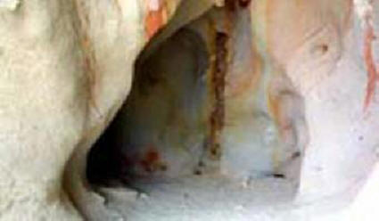“Na njenom zidu je oluk promjera oko 40 cm, koja se spušta na krajnji kraj pećine. Na podu je rupa približno istog promjera, vodeći negdje duboko u liticu. Takve iste crveno-smeđe, boje stijena, cijevi se nalaze iznad pećina i na jezeru. Neki od njih se spuštaju voda. ”