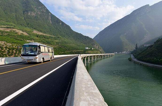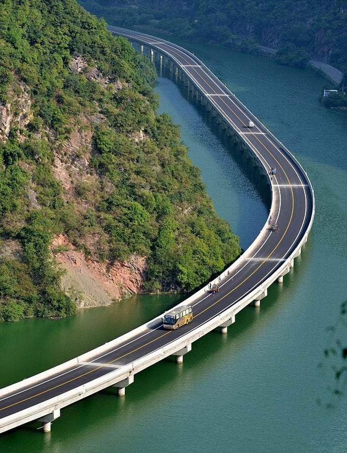 Neobični projekt mosta uveli su 2013. godine Kinezi Specijalista Chen Xingda. Stručnjak je otkrio da je vlada planira napraviti dugi tunel u bujnoj šumi brda i predložio je da sačuva prirodu, izgradivši umjesto toga obilazak rijeke koja obuhvaća brdo. Službenici su to slušali Chenovi saveti i dali su zeleno svetlo za izgradnju rečnog mosta. Sad to jedan od najslikovitijih puteva u celoj Kini Republika.