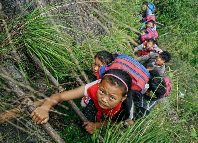 Ako mislite da je put vašeg djeteta do škole izuzetno opasan zbog velikog broja prometnih puteva koje on morate ići, tada biste trebali saznati u kojim uvjetima djeca iz udaljenog sela u NRK stižu do mjesta studija, i prestanite brinuti o svom potomstvu. Mali Kinezi penjati se stotinama metara preko čiste litice i to je vjerovatno najviše opasan put do škole na planeti.