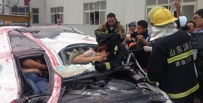U gradu Qingdao koji se nalazi na istoku kineske provincije Shandong, dogodila se stravična saobraćajna nesreća. Vozač kamiona koji prevozi težak kontejner sa teretom, ne izgubio kontrolu, automobil se prevrnuo i više tona metalna kutija srušila se tačno na putnički automobil koji je prolazio u blizini