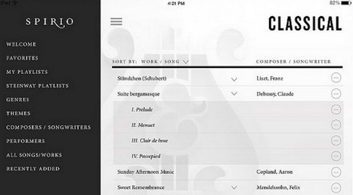 Spiriova elektronska memorija pohranjuje 1.700 komada muzike, koji se preuzimaju na iPad pomoću posebne aplikacije i komuniciraju s tipkovnicom preko Bluetooth-a.