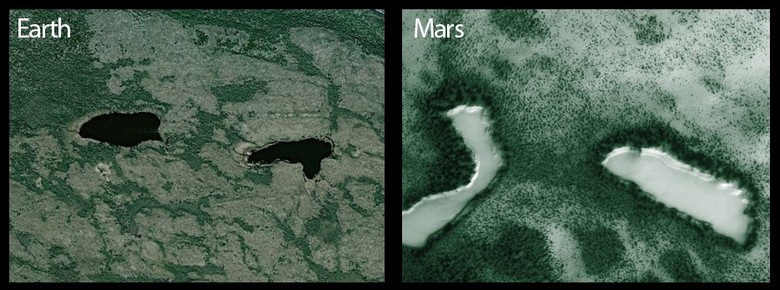 Marsovski krajolik, naravno, ovo nije lijepa riža terase Vijetnama i neverovatni parkovi Japana, ali i na Zemlji slične crvene kamene pustinje i kanjoni mogu se naći u obilje. Štaviše, čini se da na Crvenoj planeti ima vode, ako opet pribjegavaju “dekodiranju” NASA retuširanih slika (vidi fotografiju ispod).