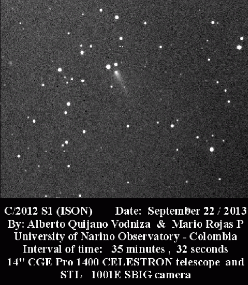 Komet ISON leti na Sunce radi naknadnog sudara, što će se dogoditi na Dan zahvalnosti 2013. Ako ona preživjeti sudar, možda će postati jedan od najvidljivijih Komete iz 2013. godine. Trenutačno je još daleko, ali njena brzina impresivno – više od 115200km \ h od 22. rujna. Alberto Kihano iz Kolumbije, snimio je 35-minutni video o letu komete 22 Septembra Kometa ISON približava se Marsu brzinom 115200km \ h “Kretanje komete bilo je jasno vidljivo”, kaže on. “Ja koristio je 14-inčni teleskop Celestron i STL-1001E SBIG kamera. “Komet ISON trenutno se približava Marsu u istočno nebo prije izlaska sunca. 1. oktobra leteće pored Crvene planete na udaljenosti od samo 0,07 na AU (astronomske jedinice). Mars roveri čekaju uzeti krug raspona komete, prenosi NASA. U četvrtom U četvrtak, studeni se u Sjedinjenim Državama obilježava Dan zahvalnosti. U 2013. godini to će biti 28. novembra 2013.