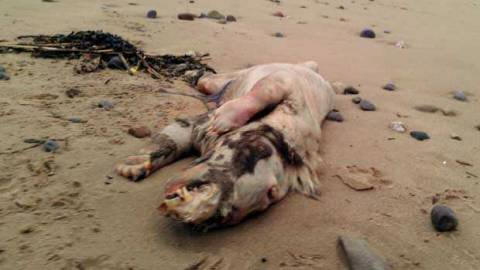 Stanovnik Tenbyja, Ujedinjeno Kraljevstvo, šetajući plažom, kada je uočio leš životinje u pesku. Čovek je prišao bliže i pažljivo pregledao mrtvu zver.Za vreme pomnog pregleda svog nalaza, 27-godišnji Peter Bailey shvatio je da ne poznaje nijednog životinja koja izgleda kao neobično stvorenje. Boji se čudovišta ispraće ga val, čovjek ga je fotografirao i sjetio se onog prepoznatljivog karakteristikama.